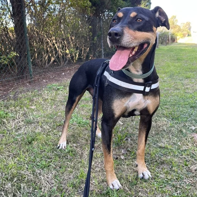 At eight years old, this gentle Australian Cattle Dog X enjoys a relaxed lifestyle. She loves sunbaking, lounging indoors, and short daily walks where she’s a dream on the lead. Her favourite part of the day is spending time with her humans — she’s full of cuddles, kisses, and loyalty. Once she trusts you, you’ll share an unbreakable bond. Alina is house and crate trained, loves treats, and could live with another calm dog (after a meet and greet). She’d suit a quiet home with older, dog-savvy teens — just no cats, please!