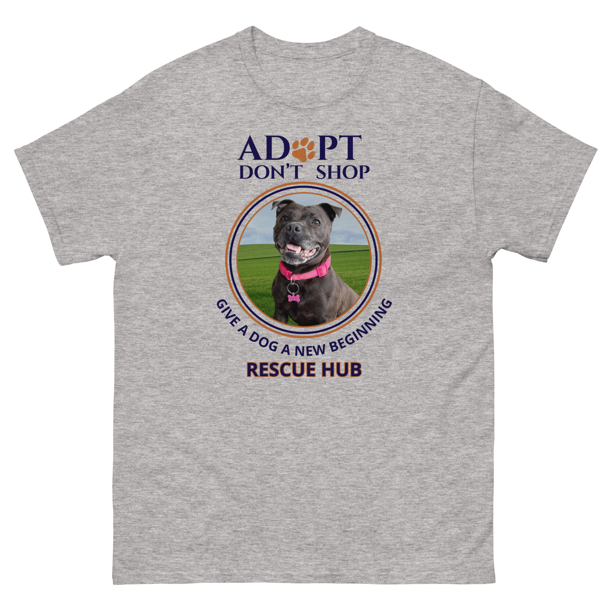 Every Rescue Hub shirt purchased helps support the dogs in our care while spreading the Adopt Don’t Shop message.