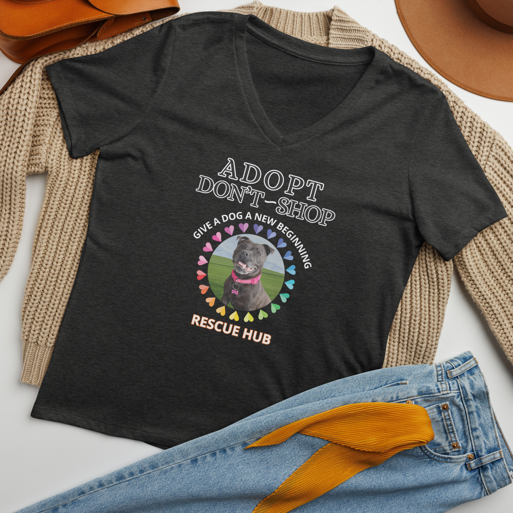 Rescue Hub Adopt Don’t Shop Women’s Relaxed V-Neck T-Shirt