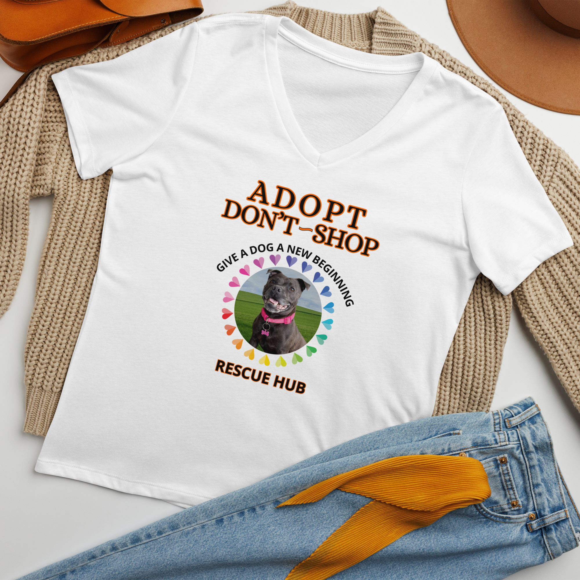 Rescue Hub Adopt Don’t Shop Women’s Relaxed V-Neck T-Shirt